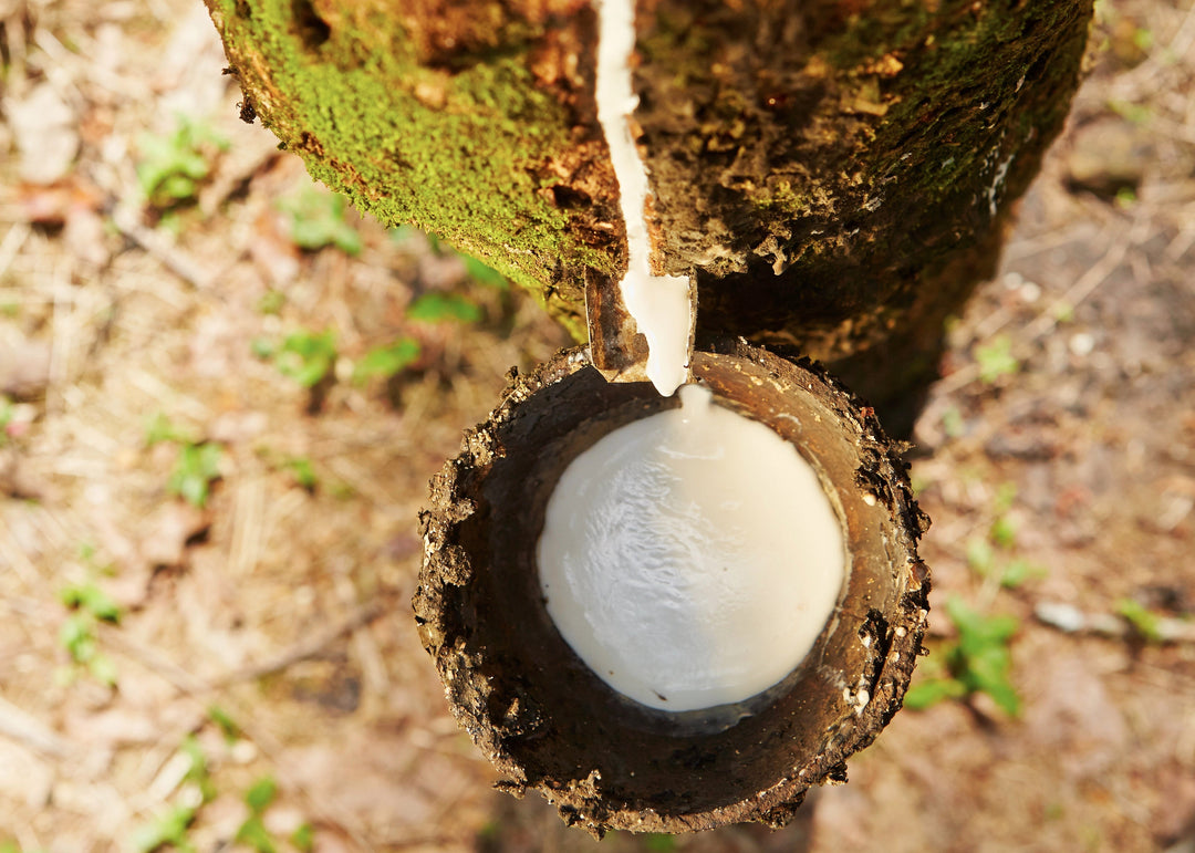 A extração é feita de forma cuidadosa, colhendo o “leite” de látex em pequenos recipientes, um processo que só se inicia quando a árvore atinge sua maturidade, aos seis anos. A partir daí, cada árvore pode fornecer cerca de 80 gramas de látex por dia, durante até 25 anos — um ciclo produtivo de longo prazo e baixo impacto ambiental.